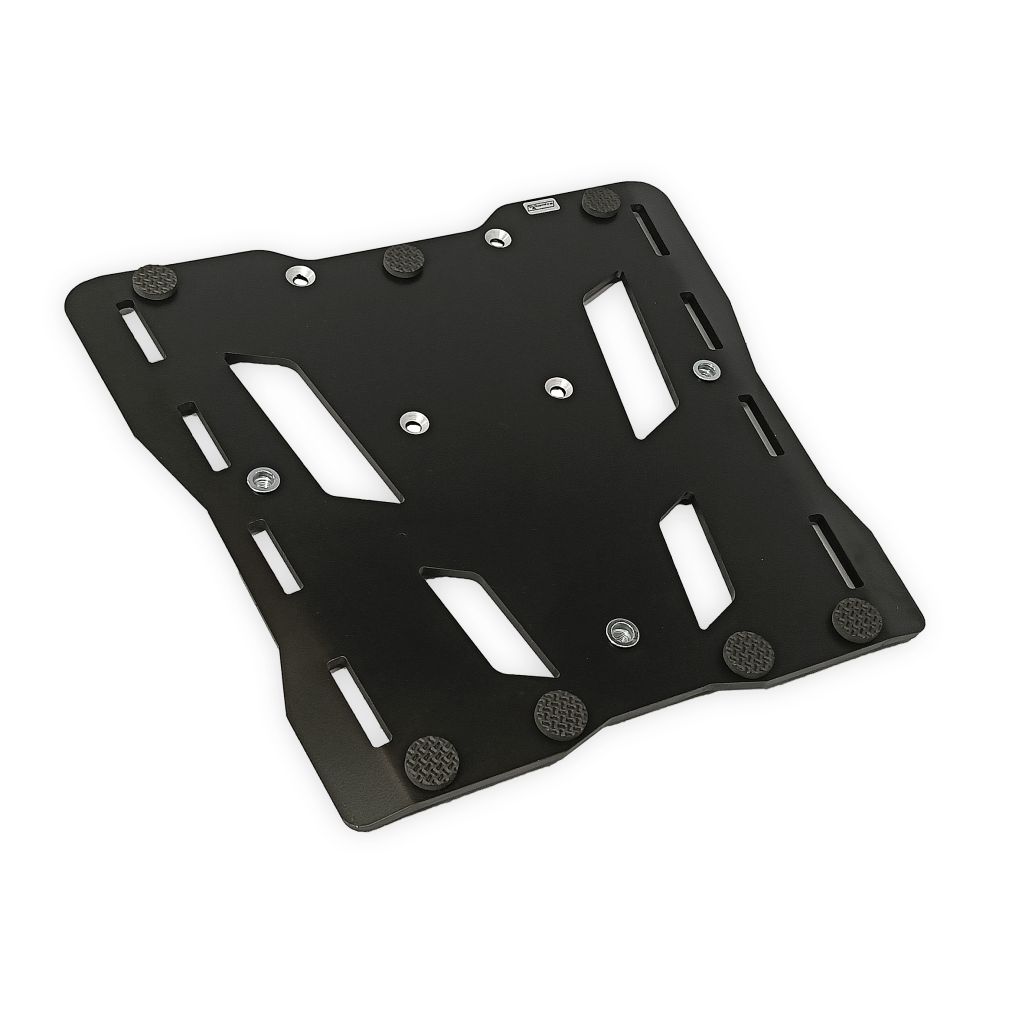 Expedition Cases to nie tylko kufry, ale i kompletne rozwiązanie montażowe. Płyta aluminiowa o grubości 5mm i zagiętych krawędziach poprawiających sztywność doskonale sprawdza się jako element nośny. Zapewnia podparcie pod całym dnem. Stalowe gwinty do montażu kufra centralnego. Każdy motocykl posiada indywidualny kształt płyty dlatego w celu zakupu prosimy o kontakt osobną wiadomością - prześlemy ofertę. Cena dotyczy jednej sztuki wraz ze wszystkimi potrzebnymi do montażu śrubami i tulejami.
