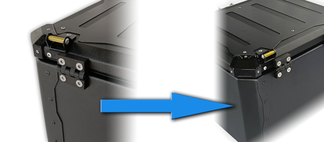 - Zmieniliśmy konstrukcję pokrywy dodając ukryty wspornik pod narożnikiem, dzięki któremu nie jest on już konstrukcją nośną przez który przechodzi uszczelka. W praktyce sprowadza się to do tego, że po zamknięciu zamka nie przechylają się one do dołu zapewniając większy i równomierniejszy docisk całej pokrywki. Poprawia to szczelność i sztywność całego elementu.