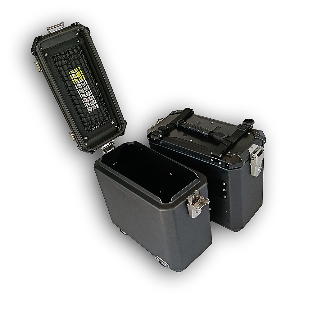 Konstrukcja jest aluminiowa, zaginana i spawana z nastawieniem na najlepszy stosunek wytrzymałości do wagi. Kompozytowe elementy ochronne i wiele zewnętrznych chwytek do troczenia dodatkowego bagażu w tym opon. W przypadku kufrów bocznych korpus wykonany jest z blachy o grubości 2mm, a pokrywki dla obniżenia wagi z blachy 1,5mm. W przypadku kufrów centralnych, które nie są tak narażone na uszkodzenia – całość wykonana jest z blachy 1,5mm z wyróżnieniem dna, do którego jako elementu nośnego użyta została blacha 2mm. Łączenie większości elementów za pomocą śrub, dzięki czemu można je wymienić nawet w warunkach polowych bez konieczności użycia specjalistycznych narzędzi.