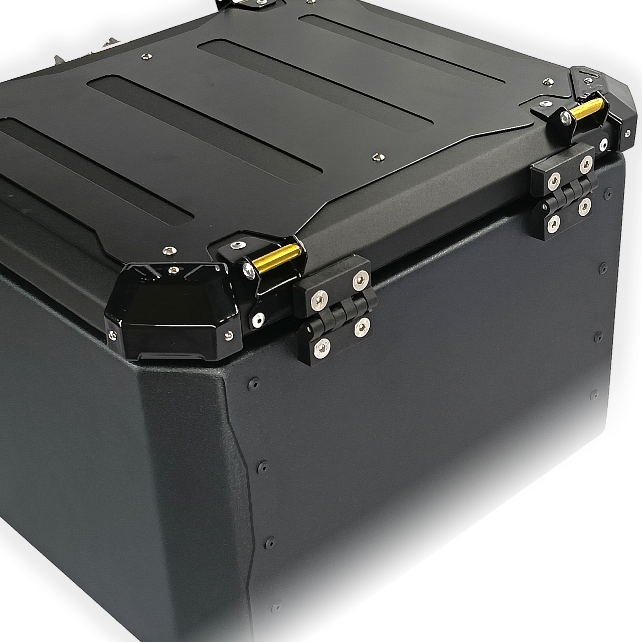 Bardzo wysoka wytrzymałość na uszkodzenia mechaniczne i zewnętrzne warunki atmosferyczne. Wysoka szczelność. Aluminiowa płyta na pokrywce izolująca bagaż od bardziej szorstkiego lakieru bazowego dzięki czemu przytroczone dodatkowo torby zewnętrzne nie ulegają przetarciom. W środku dno wyłożone miękką, wyciszającą gąbką. Dolne krawędzie korpusów zostały ścięte co pozwala na większy przechył w zakrętach i znacząco podnosi sztywność. Podwójne uszczelnienie w każdym newralgicznym miejscu łączenia blach. Podkładki dzięki którym kufry można stawiać bez obawy o uszkodzenie na twardych podłożach.