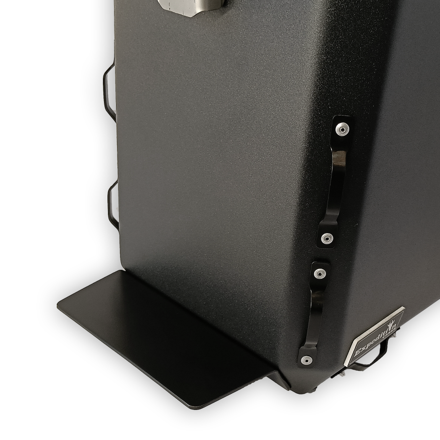 Uniwersalna, aluminiowa półka na dodatkowy bagaż. Zestaw zawiera 4 dodatkowe chwytki. Wykonane z blachy aluminiowej 3mm, lakierowane na czarno. W zestawie są śruby montażowe i paski do troczenia. Gotowe do montażu.